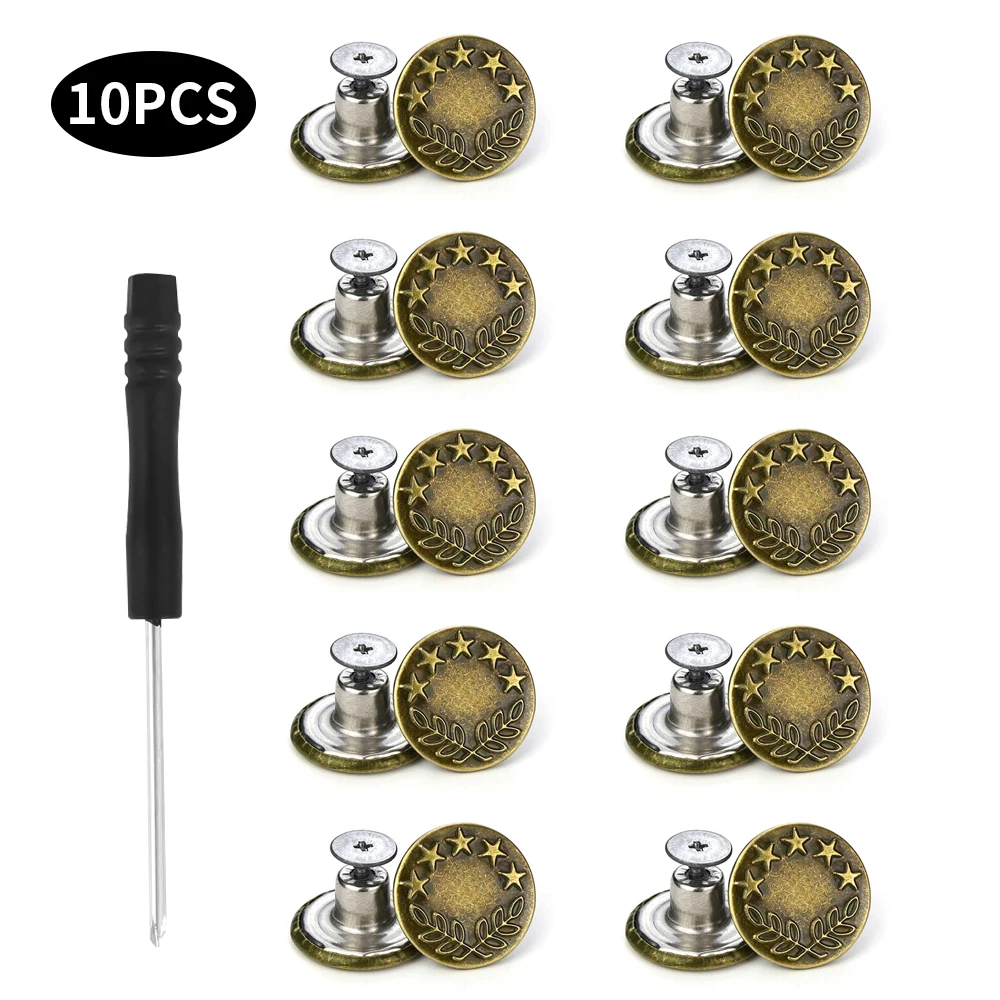 Detachable Jeans Screw Button, Adjustable Waist Alloy Buckles and screwdriver