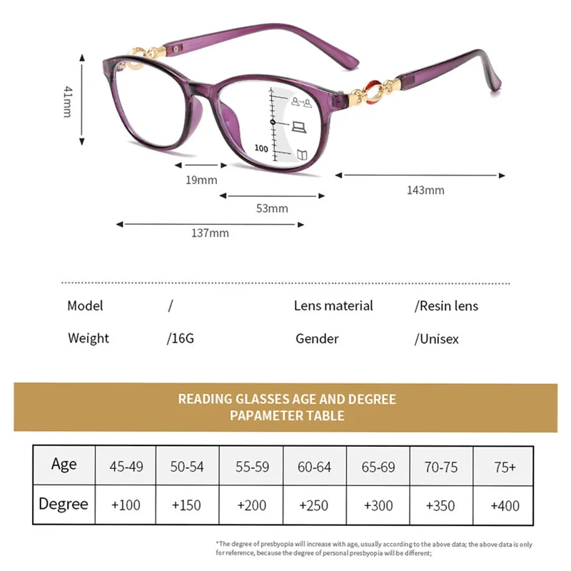 Anti-blue Light Multifocal Reading Glasses Women +1.0 To +4.0